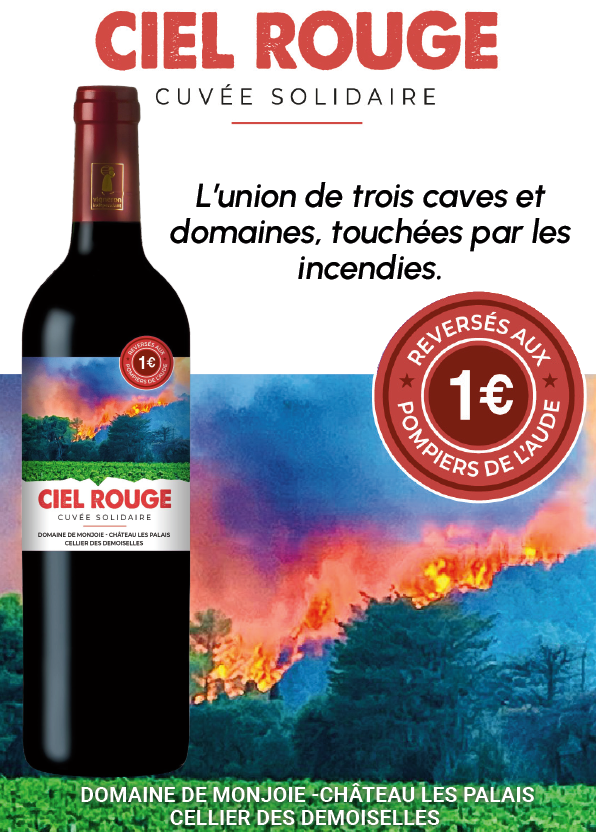 Face à cette épreuve, cette coopérative a décidé, aux côtés du Château les Palais et du Domaine de Montjoie de créer une cuvée solidaire : “Ciel Rouge”, pour soutenir les vignerons sinistrés.